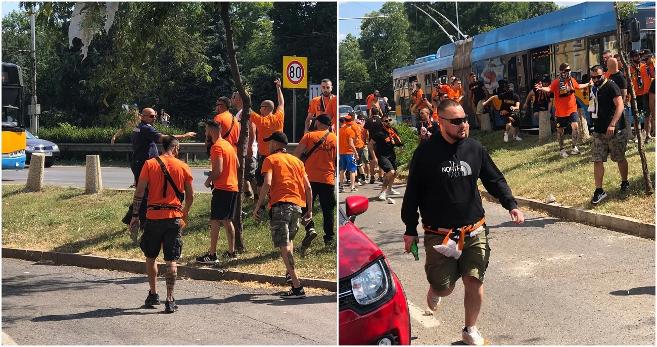 В социалните мрежи се появиха кадри как привърженици на гръцки футболен отбор ПАОК и полицаи си разменят удари в центъра на София. Снимките са направени от случайни минувачи.