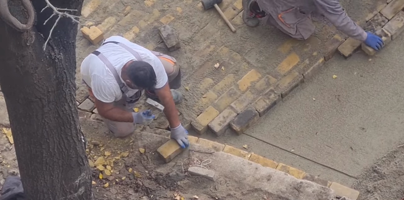 В социални мрежи се появи видео, в което се вижда как работник, който реди паветата в центъра на София умишлено чупи паве с чук, за да пасне на подредбата.