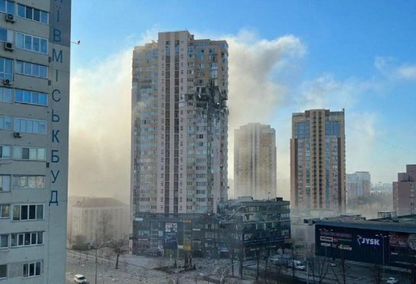 На кадри в социалните мрежи се вижда как пушек се издига от ударената сграда.