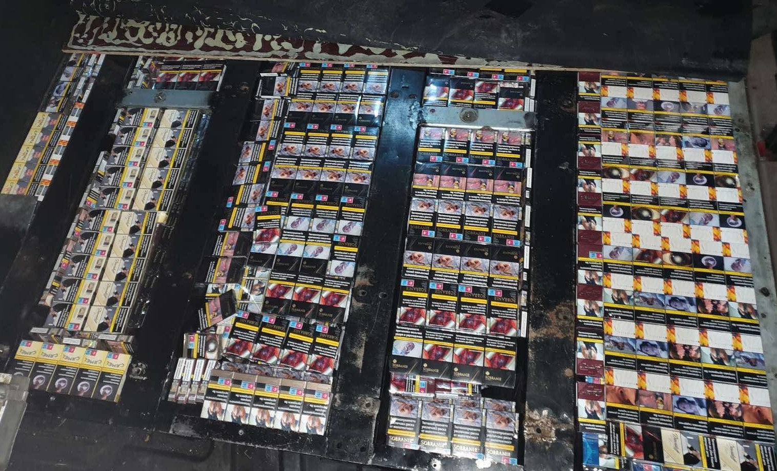 След разтоварване на товара и личните вещи, превозното средство е пролъчено с мобилна рентгенова система, която показва в пода на автомобила зона с подозрителна плътност. След демонтиране на седалките и премахване на плоскостта под тях митническите инспектори откриват тютюневи изделия от известни марки с български акцизен бандерол и с общо количество 48 400 къса (2420 кутии).