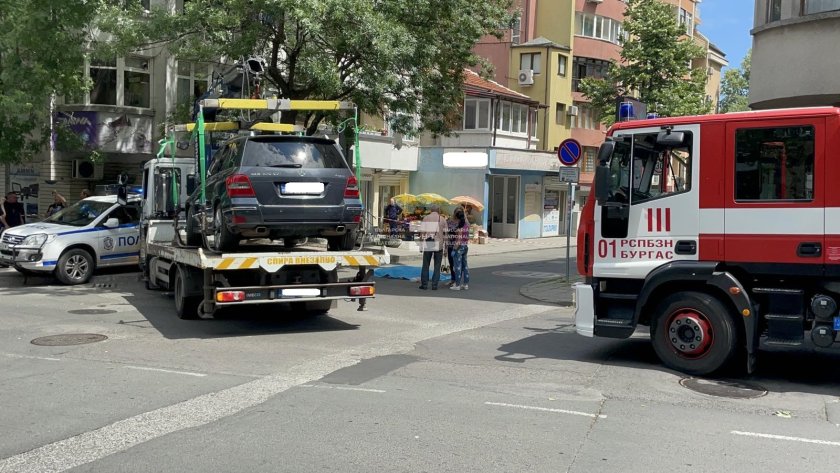 Инцидентът в центъра на Бургас е станал около 13.30 ч. Наложило се е от „Пожарна безопасност и защита на населението“ да преместят колата, за бъде извадено тялото на жената.