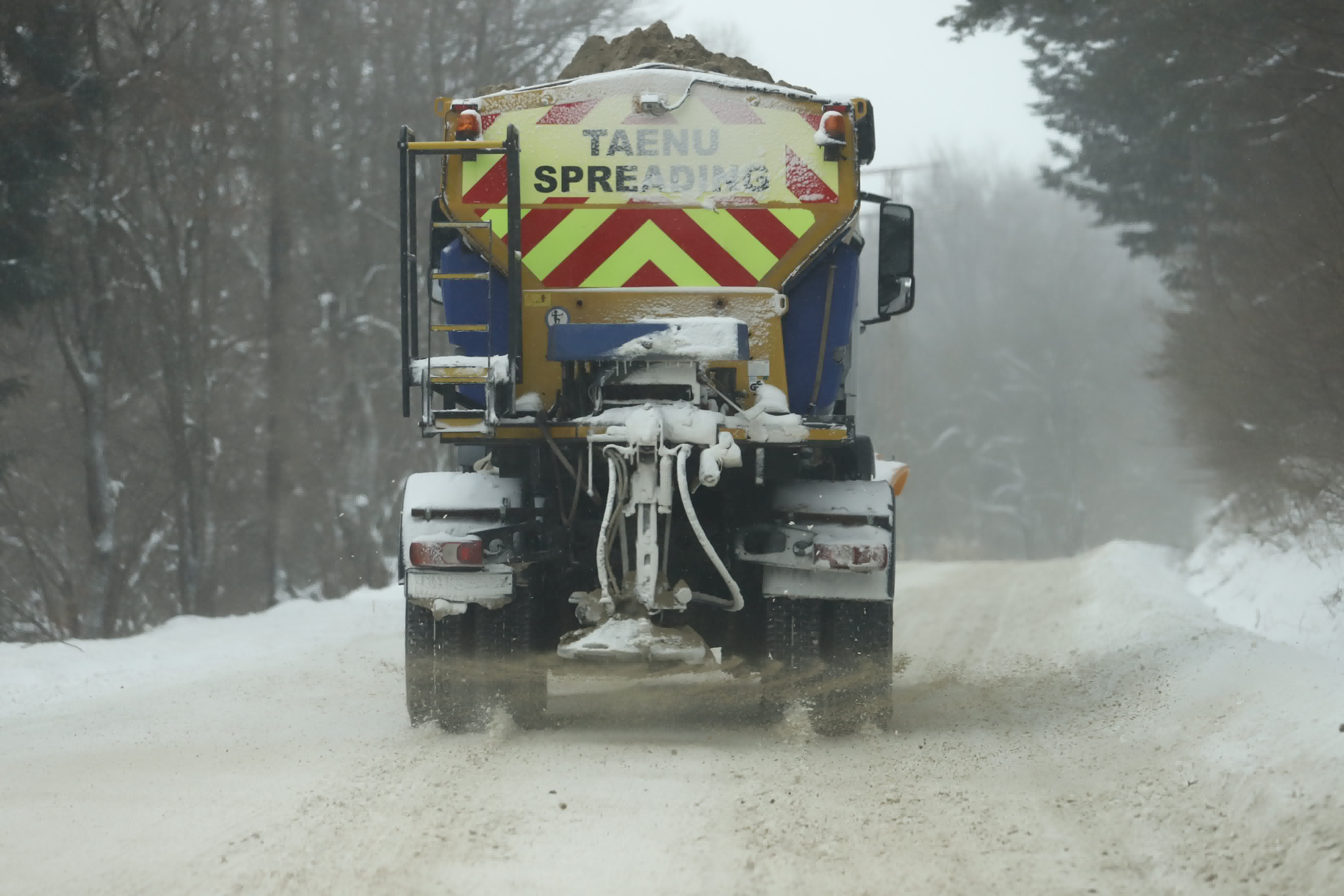 Призивът към шофьорите е да пътуват само при необходимост, да карат с повишено внимание и съобразена скорост, и да не изпреварват снегопочистващите машини.