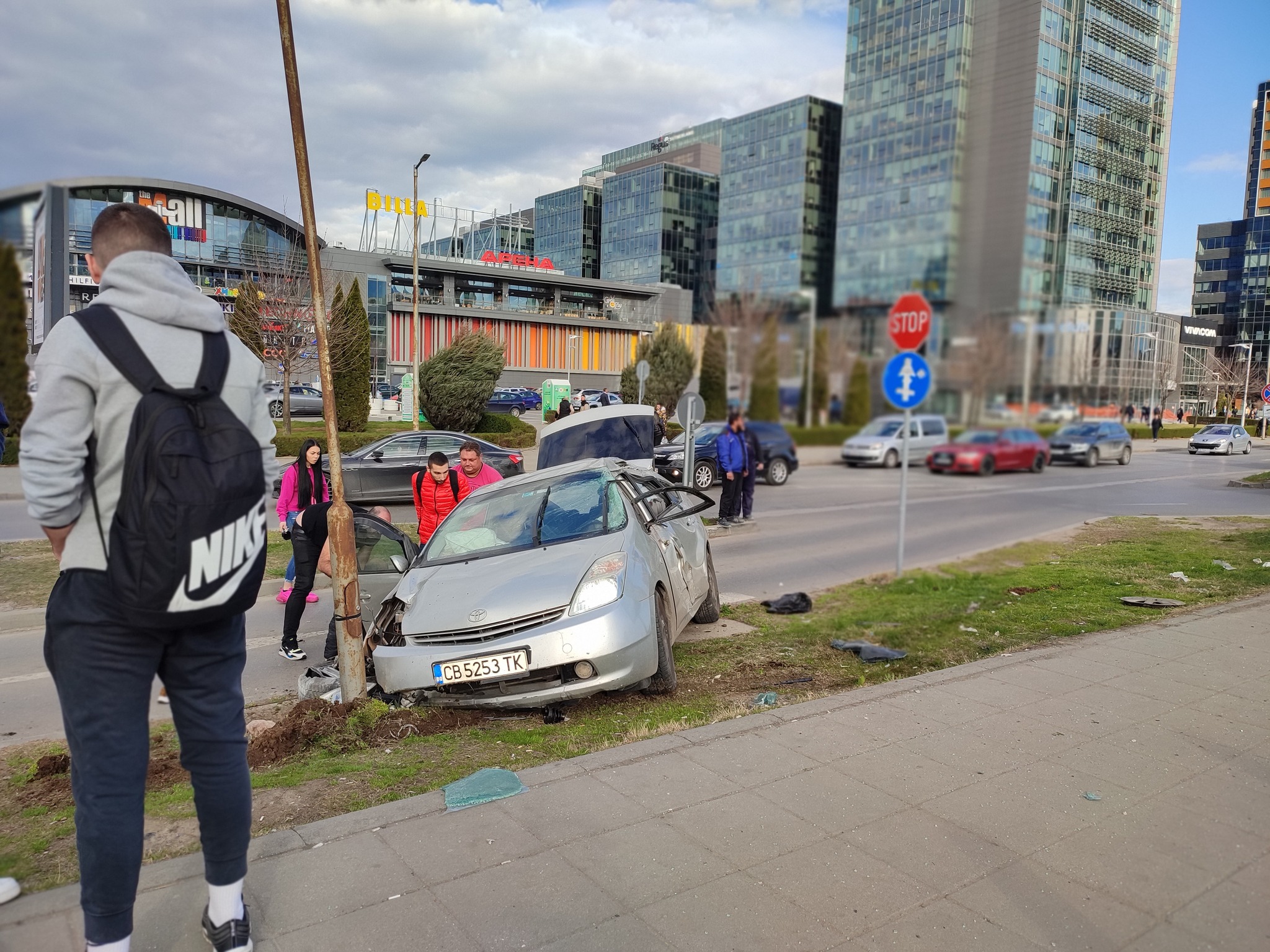 Кола се заби в стълб до спирка на градския транспорт в София. Инцидентът стана на бул. „Цариградско шосе” пред голям търговски център.