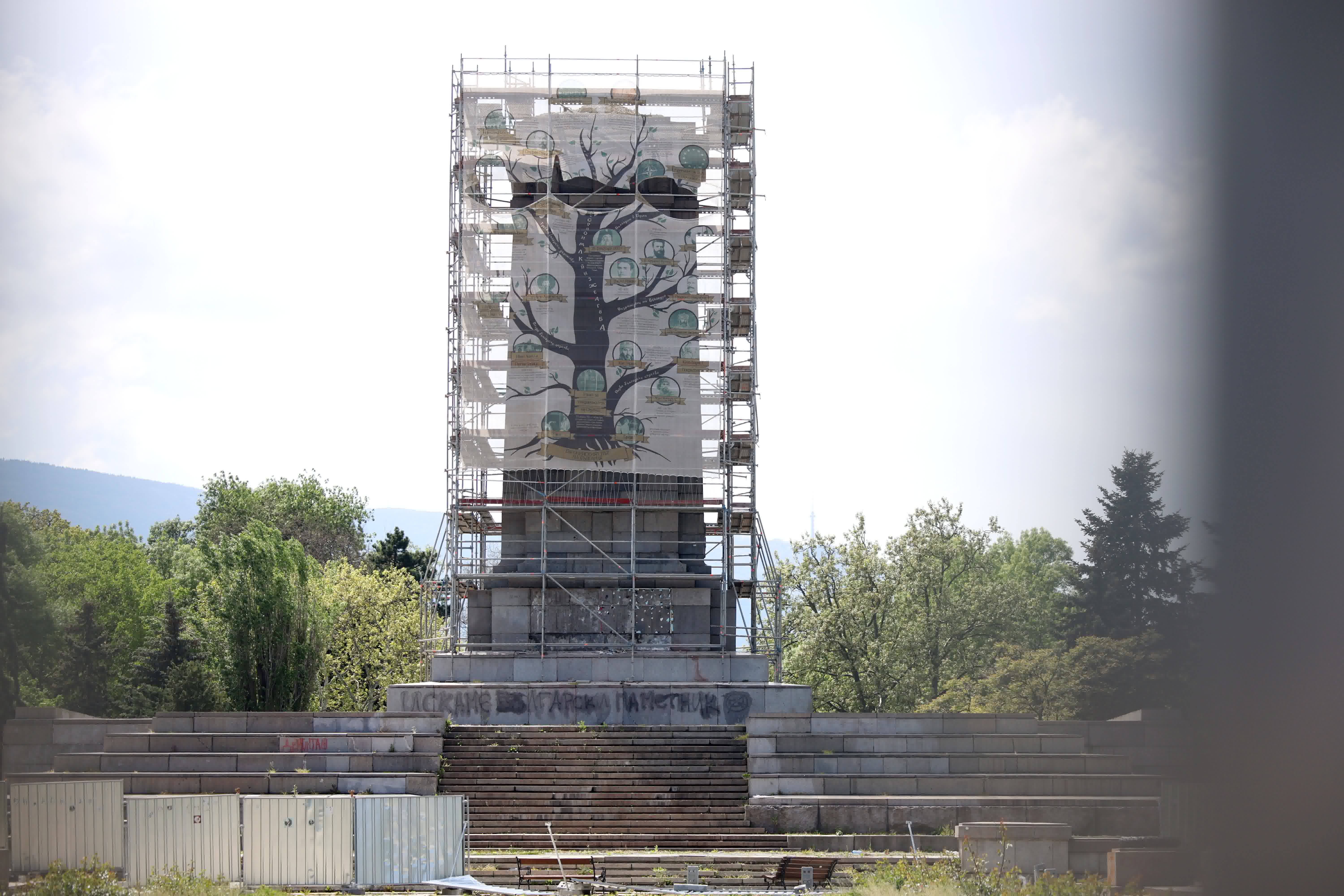 „Тук пак ще има паметник“, заканиха се Мая Манолова и Ваня Григорова на оградата на Паметника на съветската армия в София. Думите те изписаха с червен спрей.