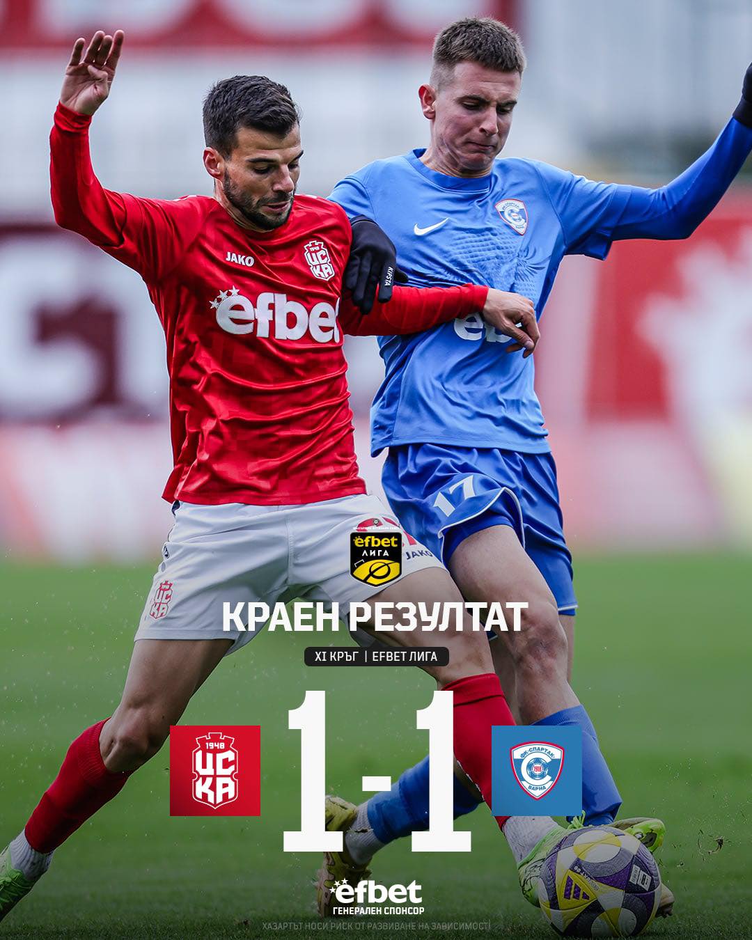 ЦСКА 1948 не успя да се изкачи, макар и временно, на първата позиция в първенството, след като направи 1:1 със Спартак Варна в среща от 11-ия кръг.