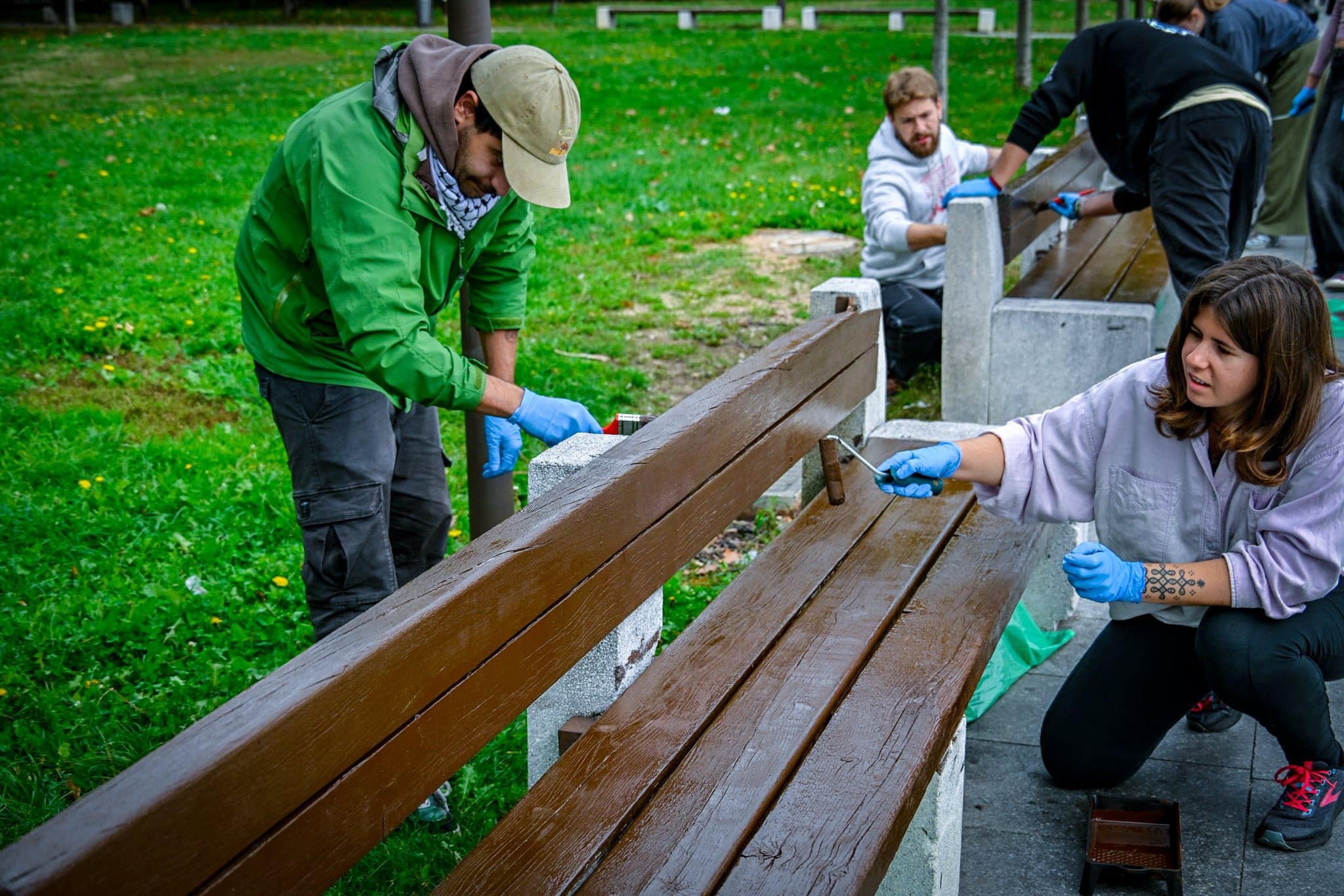 Млади доброволци от Испания, Латвия, Германия, Италия, Португалия, Франция, Република Северна Македония и България се включиха в инициативата за обновяване на пейки и детски площадки в столицата. Това съобщи кметът на София Васил Терзиев в своя профил във Фейсбук.