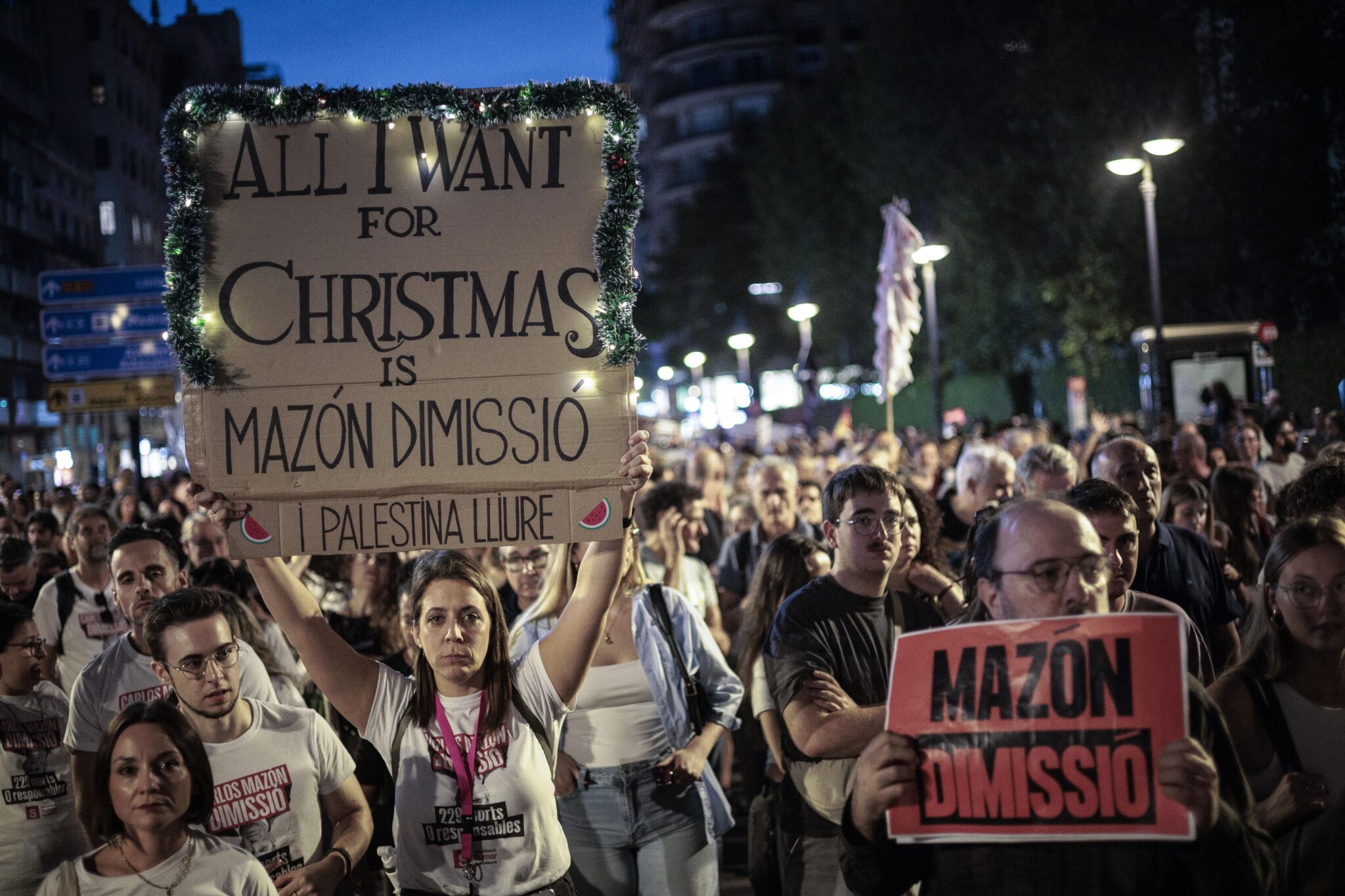 Много от демонстрантите носеха снимки на жертвите и настояваха за оставка на регионалния лидер Карлос Мазон, обвинявайки го в бавна и неадекватна реакция по време на едно от най-смъртоносните природни бедствия в Европа за последните десетилетия.