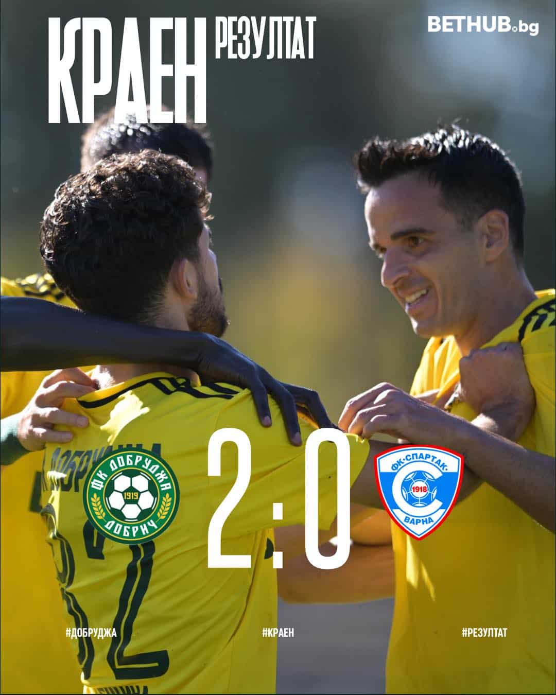 Добруджа постигна първа победа от началото на август насам в Първа лига. Новаците в елита надиграха като домакини с 2:0 Спартак (Варна) в двубой от 14-и кръг на Първа лига. Мачът се игра на стадион „Дружба“ в Добрич.