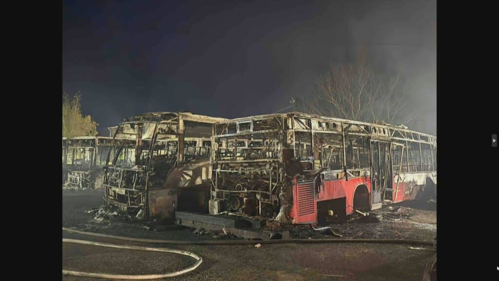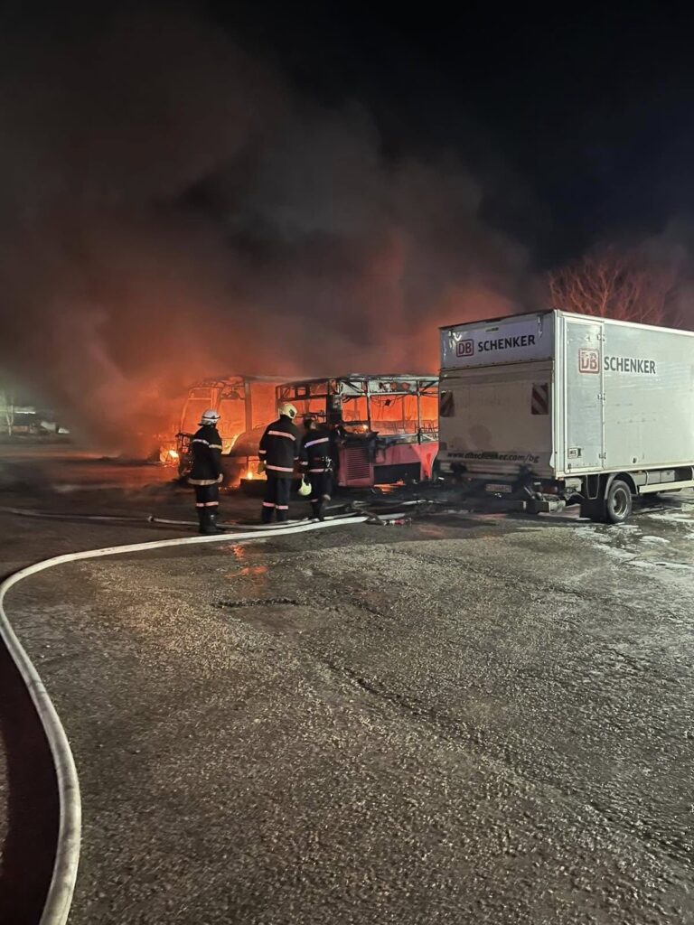 Сериозен пожар унищожи няколко превозни средства – включително ученически автобус, два буса и няколко леки автомобила – на територията на Костинброд. Огънят е възникнал в базата на дружество „Общински превози“, като пламъците бързо са обхванали паркираните машини.