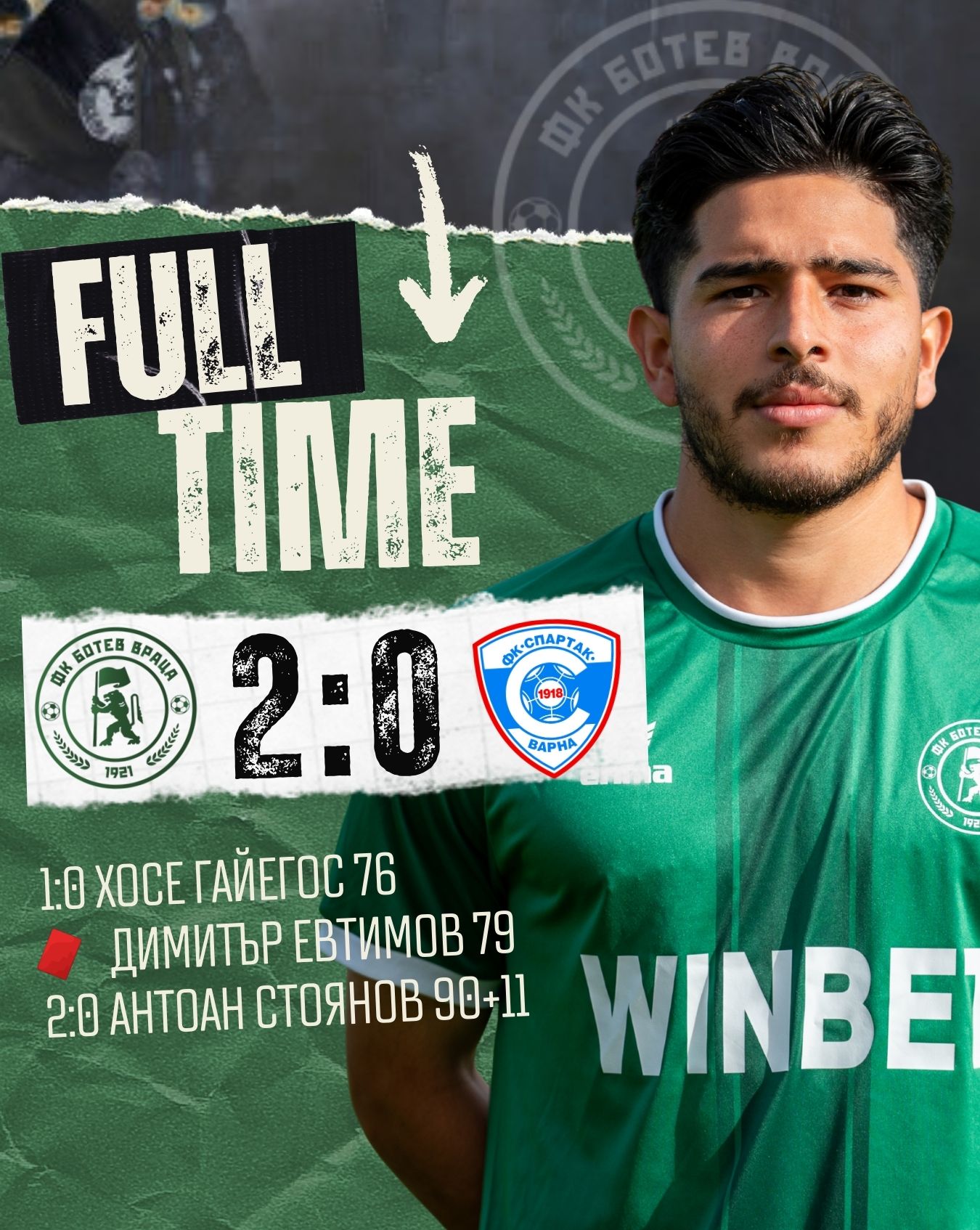 Гайегос прониза мрежата на гостите в 76-ата минута след центриране на Найденов отдясно за откриването на резултата. Три по-късно врачани останаха с човек по-малко на терена. Вратарят Димитър Евтимов получи червен картон за нарушение срещу Георг Стояновски извън наказателното поле.
