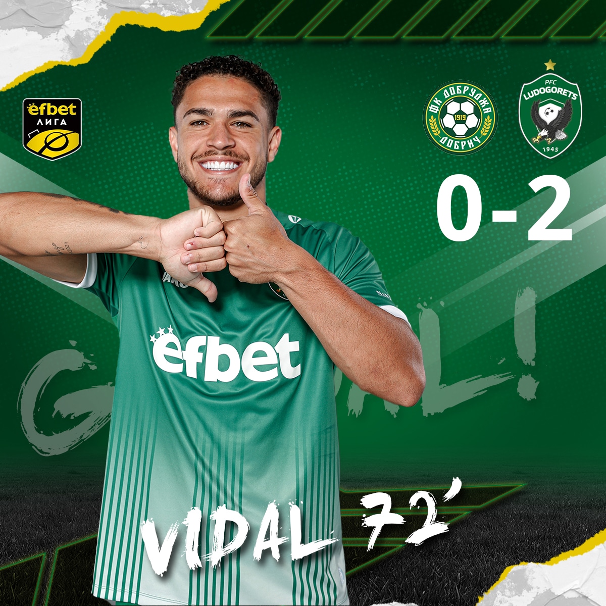 В 70-ата минута Ивайло Чочев не уцели вратата с глава, макар да нямаше човек около себе си, и да бе на броени метри от целта. Веднага след това Лудогорец удвои. Вертикален пас към Чочев не бе пресечен от Григоров, подходил лековерно в ситуацията един на един с халфа. Оттам Чочев намери Видал, който на полупразна врата вкара втория си гол в мача.
