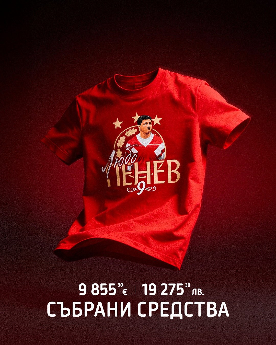 Благодарение на всички вас, които се включихте в кампанията със специалните фланелки в подкрепа на Любослав Пенев, към момента събраната сума възлиза на 9 855,30 € / 19,275,30 лв.