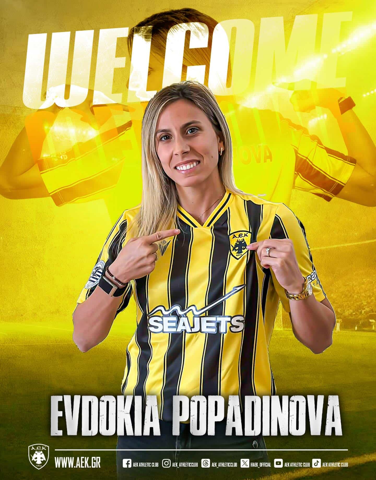 Една от най-добрите български футболисти в момента – Евдокия Попадинова, стана част от гръцкия гранд АЕК (Атина). Новината съобщиха столичани.