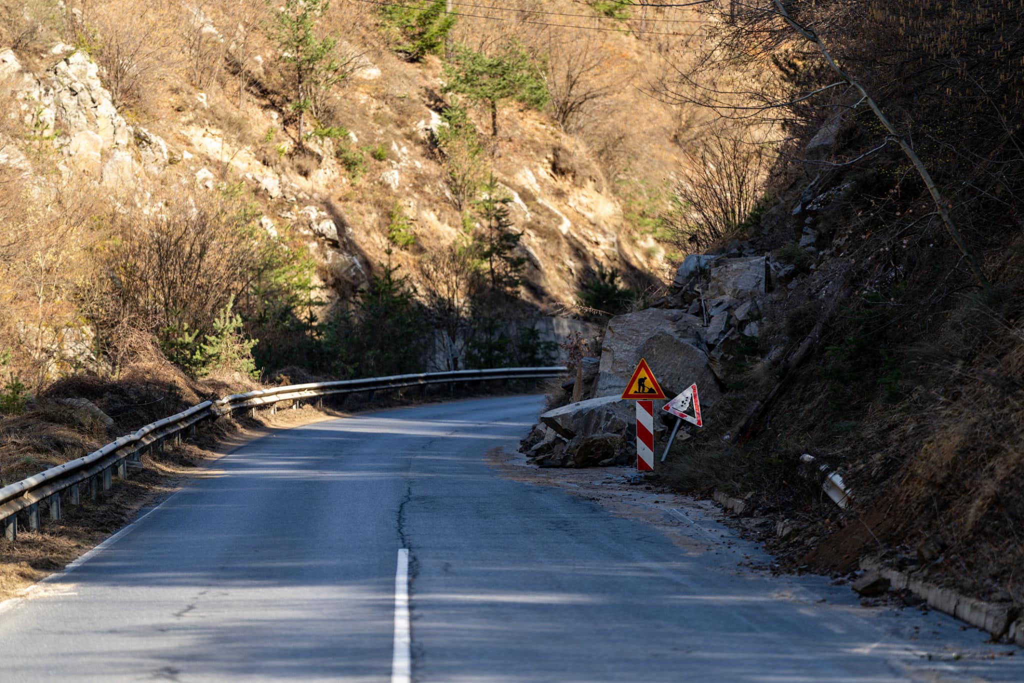 Промяната в организацията на движение е въведена с цел безопасно преминаване на моторните превозни средства, след като вследствие на обилните валежи скална маса се е свлякла върху пътното платно.