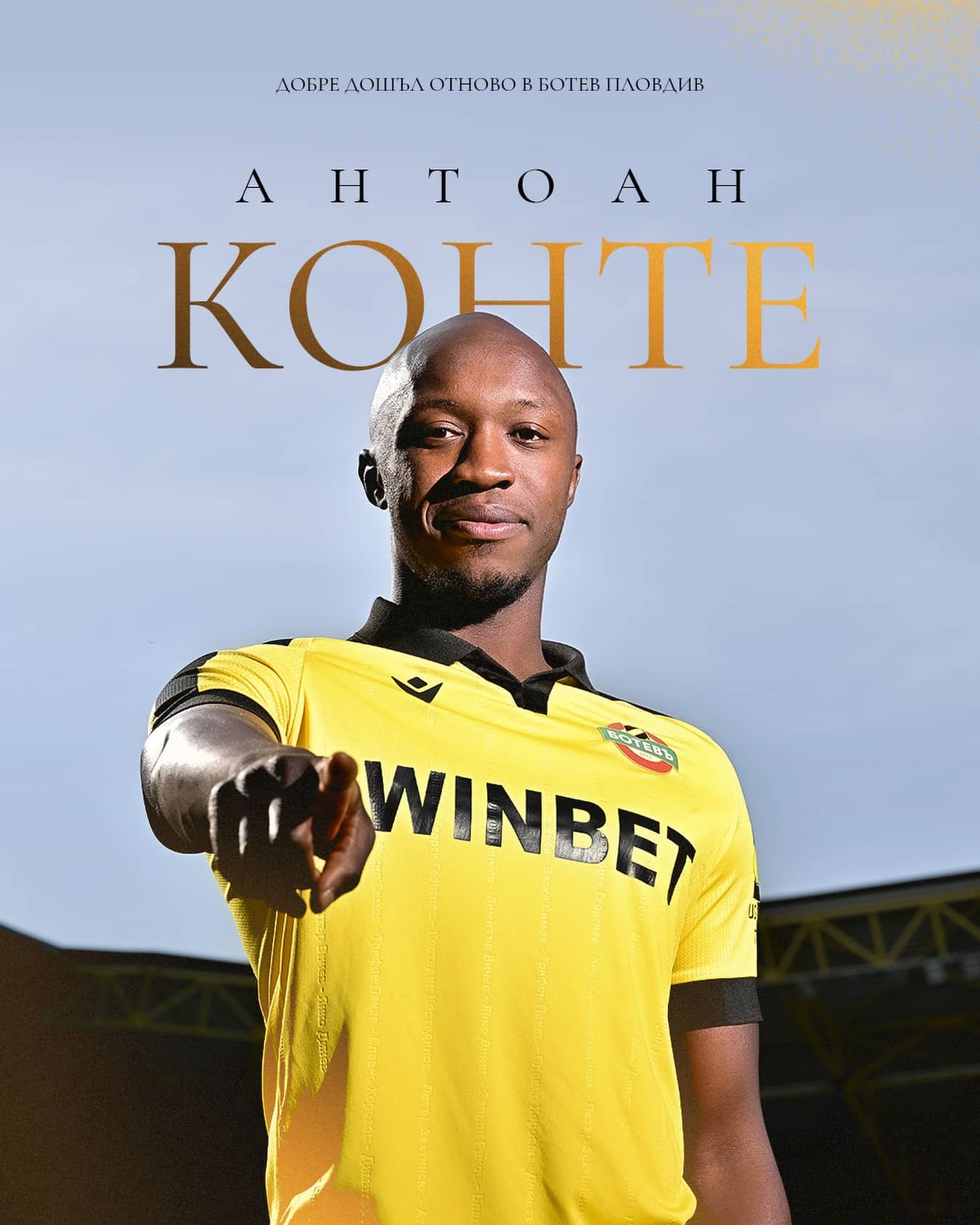 Защитникът Антоан Конте официално отново е играч на Ботев Пловдив. 32-годишният национал на Гвинея пристига като свободен агент, след като разтрогна договора си с турския Ъъдър.