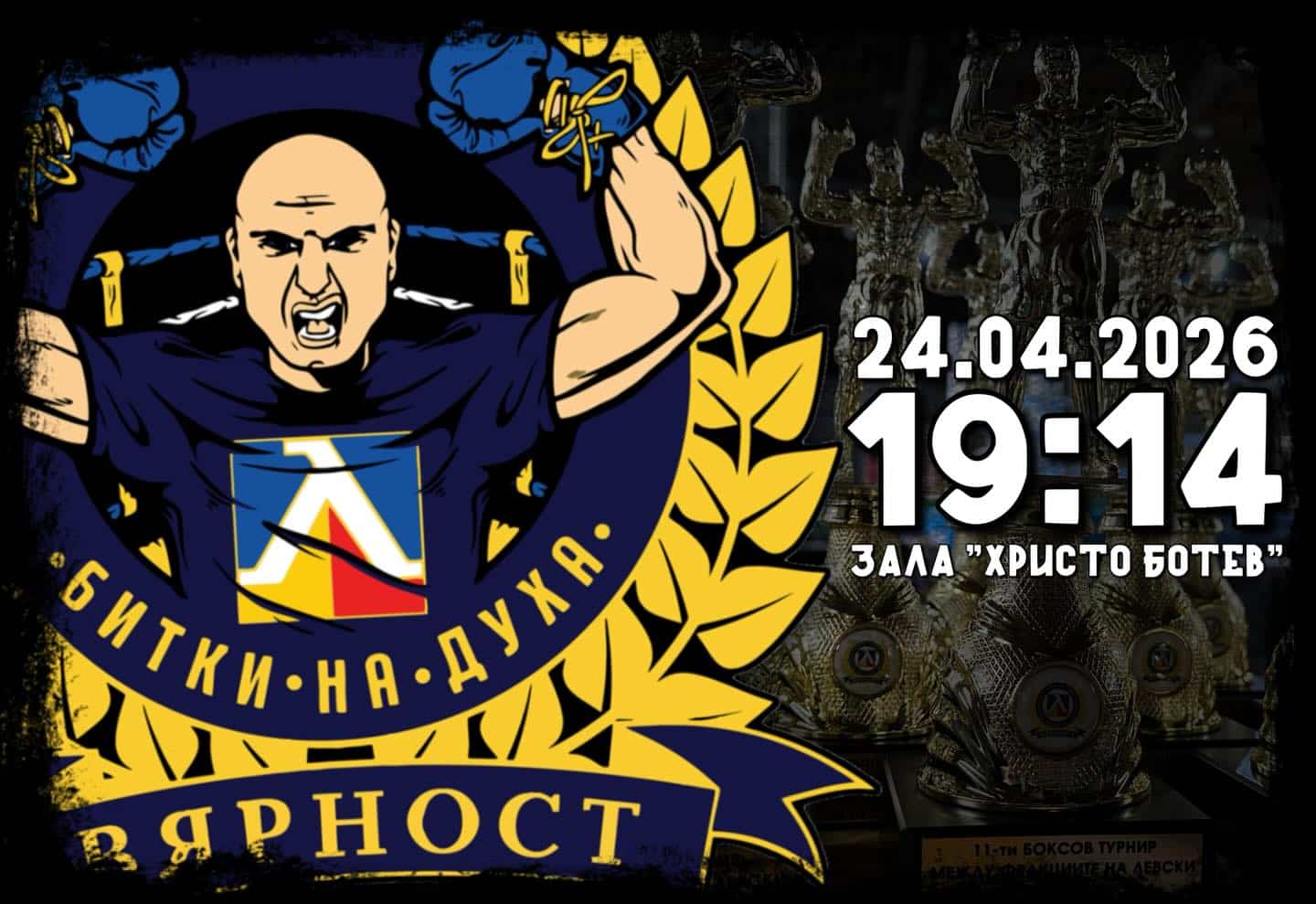 Тазгодишното издание на левскарския боксов турнир “Битки на духа” ще се проведе на 24-и април в столичната спортна зала “Христо Ботев”. Събитието ще бъде 14-то поредно.