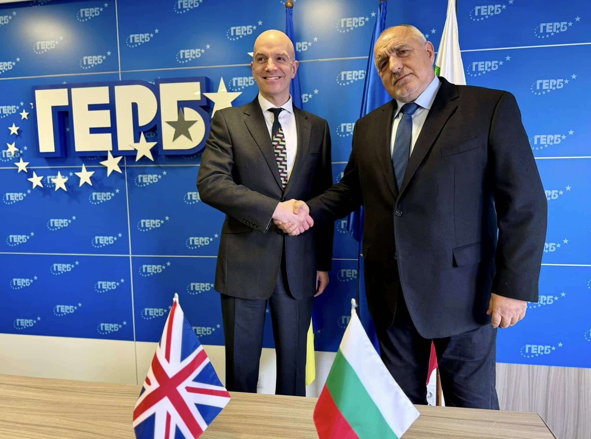 Лидерът на ГЕРБ Бойко Борисов се срещна с посланика на Великобритания в България Натаниел Копси, като разговорът е бил посветен на регионалната сигурност, двустранното сътрудничество и необходимостта от стабилни политики в условията на кризи. Новината беше съобщена от самия Борисов чрез публикация във Фейсбук.